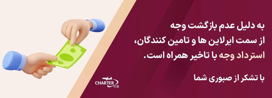 استرداد بلیط چارتر معمولا به سختی امکان پذیر است بنابراین زمانی که از سفر خود اطمینان دارید نسبت به رزرو این نوع بلیط اقدام کنید.